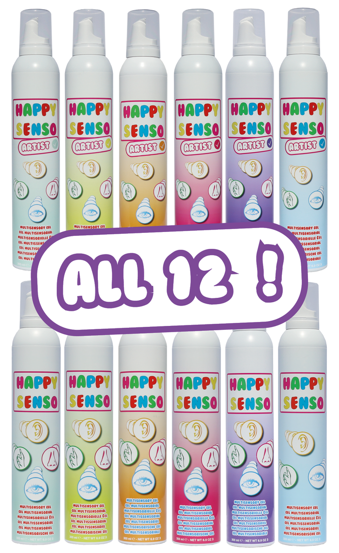 Set with all 12 Happy Senso variants. In addition to the nourishing and unique multisensory properties, the Artist variants in this set also feature color and can be used individually. The intensity can be varied by applying it in different ways. You can use it individually, together or in groups.