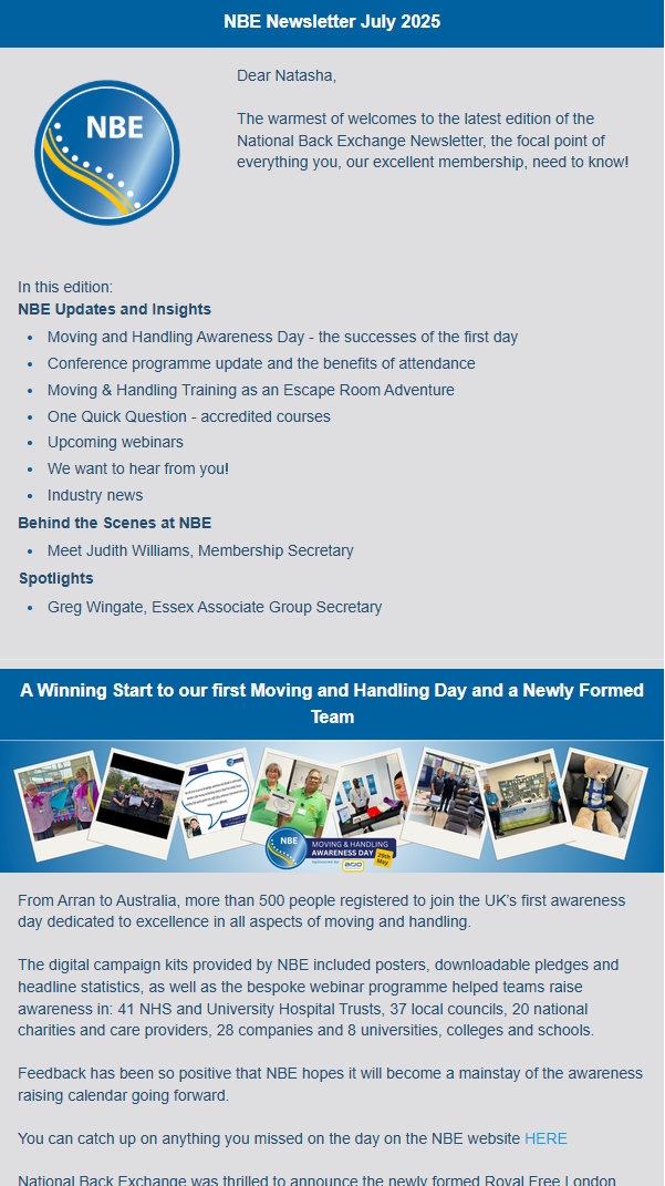 NBE Annual Moving & Handling Conference