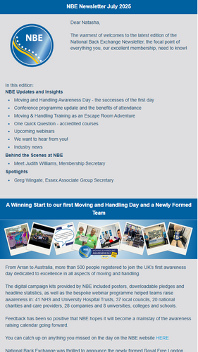 National Back Exchange promote excellence in all aspects of Moving and Handling through: