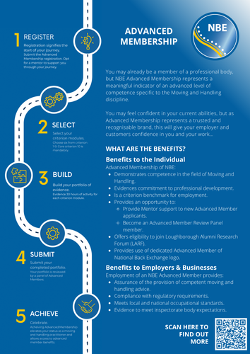 Potential to apply to become an advanced member giving you the opportunity to demonstrate an advanced level of competence specific to the Moving and Handling discipline. Find out more